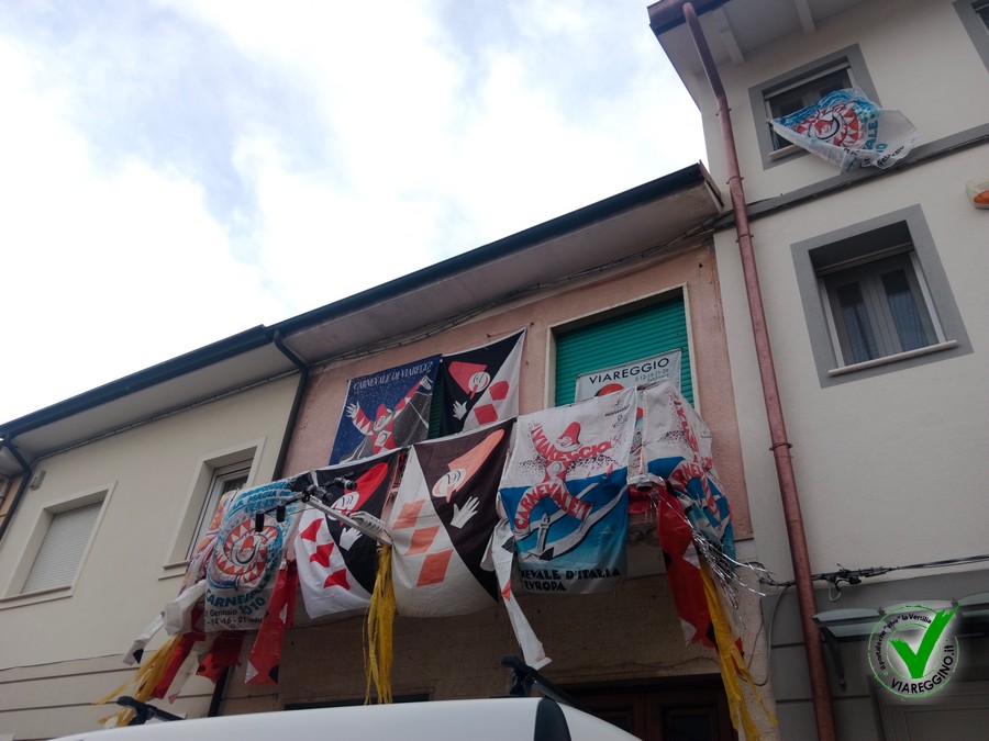 VIAREGGIO - A pochi giorni dal triplice scoppio del cannone che darà il via al primo Corso, anche i balconi della città e dei rioni si stanno colorando con maschere, bandiere e striscioni per ricordare a tutti che questa è la patria del Carnevale più bello del mondo.