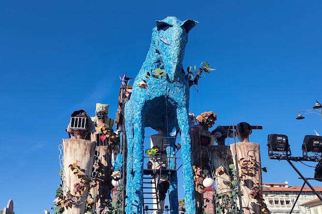 Sul carro di Carlo e Lorenzo Lombardi campeggia la storia di Marco Cavallo, la scultura realizzata nel 1973 dai pazienti del manicomio diretto da Franco Basaglia.