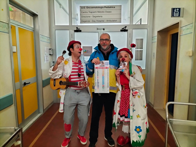Carnevale martedì 6 febbraio 2024 0Ieri, lunedì 5 febbraio, Gigi e Serena insieme ad alcuni membri di FenomenAle e Burlamacco e Ondina, maschere ufficiali del Carnevale di Viareggio, hanno partecipato insieme ai dottori-clown Doda e Bazar di Ridolina ai festeggiamenti per il Carnevale nei Reparti di Oncologia pediatrica e Pediatria dell’Ospedale Santa Chiara di Pisa, ed hanno allietato il pomeriggio dei bambini ricoverati in corsia.