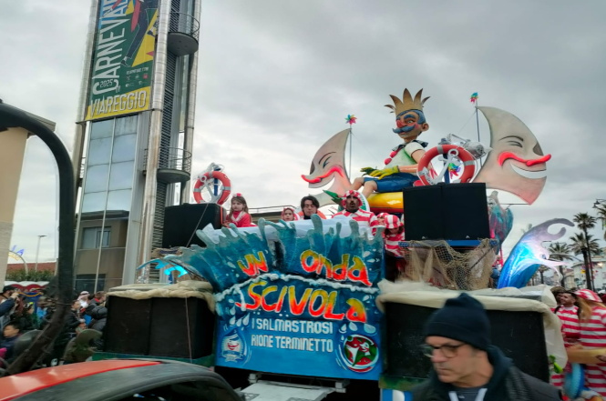 Carnevale domenica 9 febbraio 2025 0VIAREGGIO - Dopo le 17 è entrato l'ultimo carro di Seconda categoria in programma per la sfilata odierna. Dietro di lui le 7 pedane aggregative che hanno così concluso il primo corso mascherato.