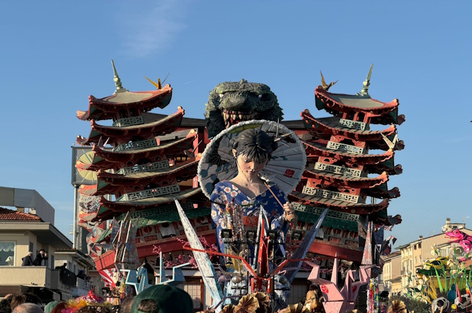 Secondo gli autori del carro, quelle 999 gru rappresentano ancora un passo dalla pace, un messaggio potente che invita alla riflessione sul valore della vita e sulla necessità di costruire un mondo più giusto. Tra colori delicati, dettagli realistici e simboli universali, il carro dei Lombardi trasforma la cartapesta in un ponte tra memoria storica e speranza futura, confermando il Carnevale di Viareggio come spazio di narrazione, emozione e coscienza sociale.