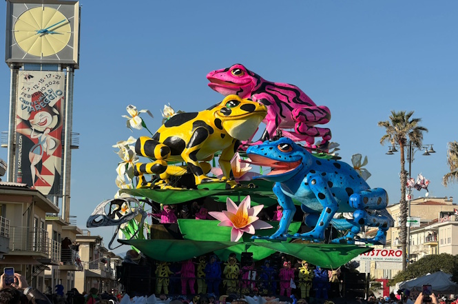 Protagoniste della scena sono tre rane saltellanti, una gialla, una blu e una fuxia, figure apparentemente giocose che diventano invece veicolo di una satira pungente e attuale. Il carro prende ispirazione dagli stagni di ninfee dipinti da Claude Monet, simbolo di una natura armoniosa e incontaminata, trasformandoli in una potente metafora della fragilità del nostro pianeta.