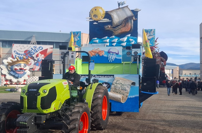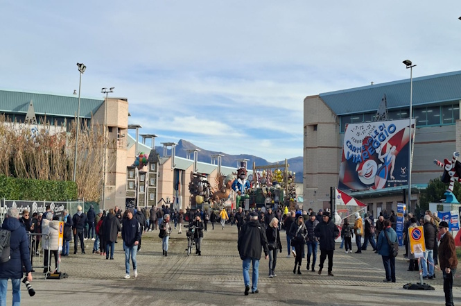 Il sole fa capolino tra le nuvole: a Viareggio non piove e i viareggini si riversano numerosi in Cittadella, curiosi e impazienti di assistere alle prime fasi della consueta e affascinante “processione” dei carri.