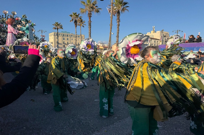 A seguire, il carro di Umberto, Stefano e Michele Cinquini, intitolato “Nemmeno con un fiore”, fa il suo ingresso in Piazza Mazzini, aggiungendo un momento di poesia e riflessione alla sfilata del 1° Corso Mascherato 2026.
