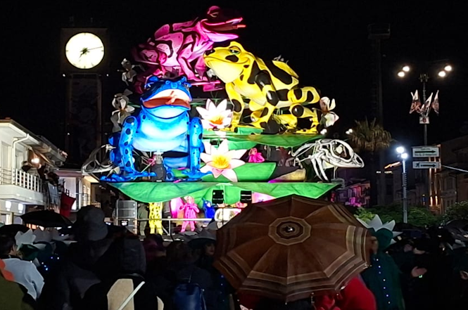 VIAREGGIO - La pioggia non accenna a fermarsi, ma i carri proseguono la loro sfilata lungo il percorso per raggiungere piazza Mazzini e farsi comunque ammirare dal pubblico presente. Nonostante le condizioni meteo difficili, la manifestazione va avanti tra luci, musica e grande impegno da parte di carristi e figuranti.
