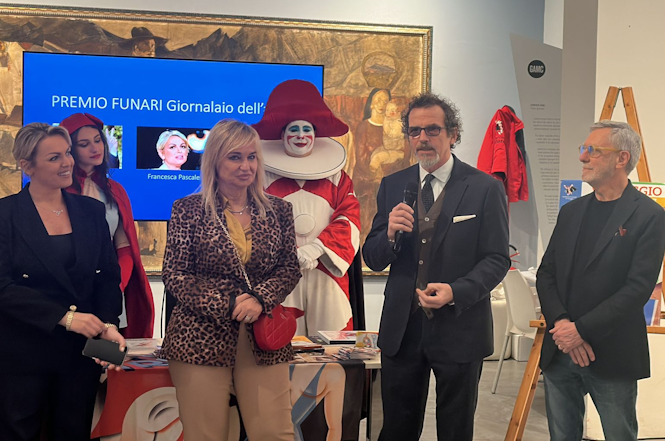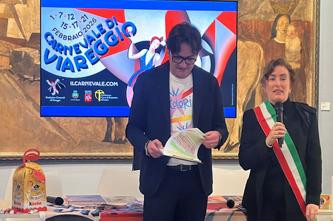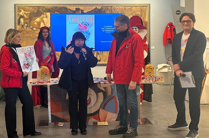 Quindi è stata la volta della presentazione della rivista annuale nella quale c'è un prezioso cameo di Vittorio Sgarbi. La rivista per questo 2026 ha un nuovo formato, più grande del tradizionale. L'ha presentata la presidente della Fondazione Carnevale Maria Lina Marcucci.