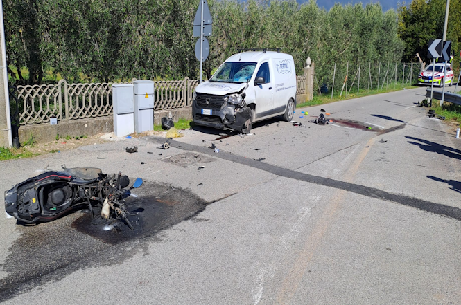 CAMAIORE - Gravissimo incidente questa mattina in via della Carraia a Capezzano Pianore tra un furgone, alla cui guida c'era un 50enne residente a Capezzano e uno scooter. Il frontale è stato causato dal fatto che il conducente del furgone stava transitando contromano.