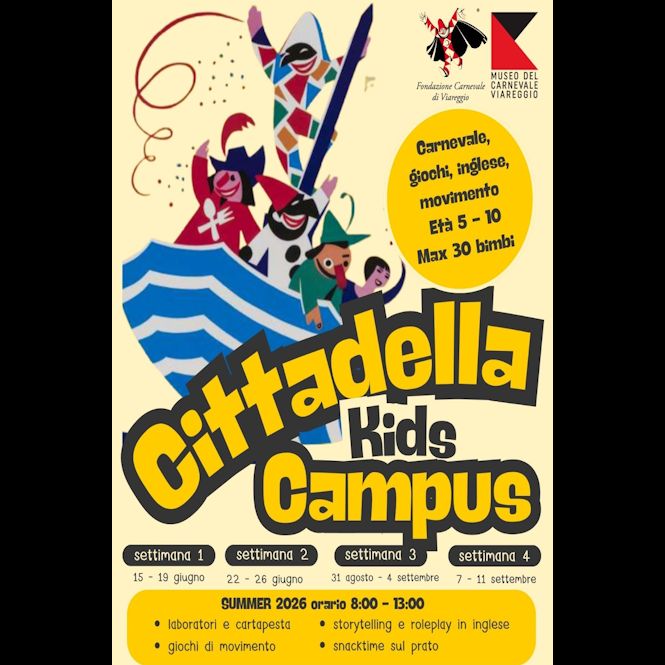 VIAREGGIO - Un’estate speciale per i bambini nel cuore della Cittadella del Carnevale di Viareggio, tra creatività, movimento e inglese con il "Cittadella Kids Campus Summer 2026"