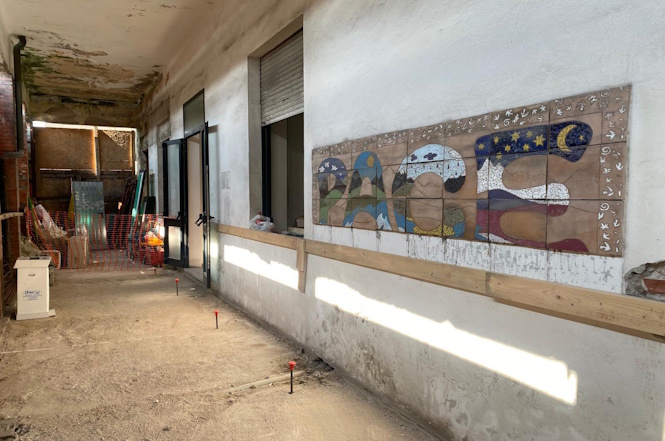 Un elemento identitario dell’edificio, l’affresco di Giovanni Lazzerini, sarà oggetto di una reinterpretazione progettuale che ne tutelerà il valore culturale e ne garantirà la durabilità nel tempo.